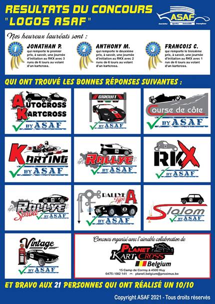 (29/12/2022) Les champions de la saison 2022 (27/11/2022) Remises des prix ASAF Cérémonie