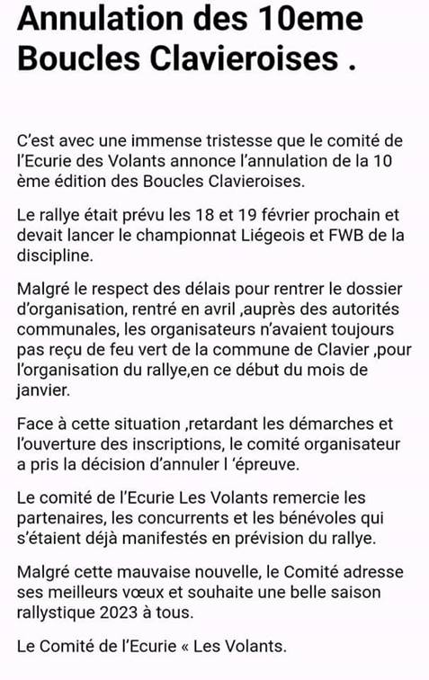 jeudi, l'Ecurie les Volants nous a informés de l'annulation du rallye